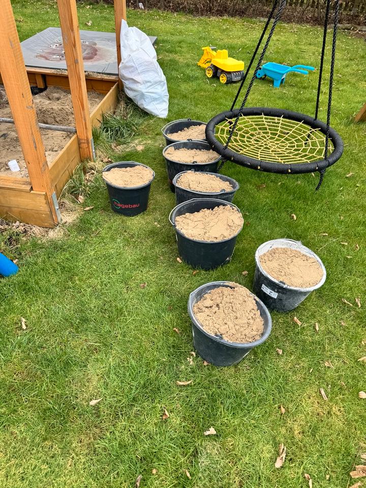 An Selbstabholer in Dinslaken:Spielsand zu verschenkenCa 150liter, eventuell mehr.Der Sand wird ersetzt, weil wir Ratten im Sandkasten hatten. Er is also nicht mehr für Sandkösten geeignet, aber für alles andere.