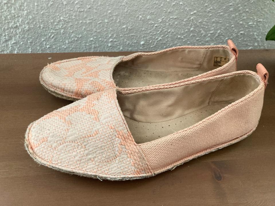 Ich gebe ein Paar helle und sommerliche Ballerinas der Firma CLARKS in gute Hände ab :)Größe: 37Die Schuhe wurden mir geschenkt, sind mir aber leider etwas zu klein. Sie wurden wenig getragen und sind noch in einem Top Zustand! Wäre schade drum!Vielleicht freut sich jemand darüber?Bei Interesse einfach melden.