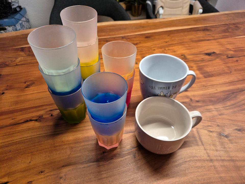 Gläser verschiedene Farben und 2 große Tassen zu verschenken