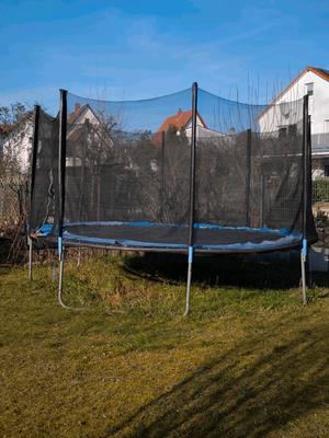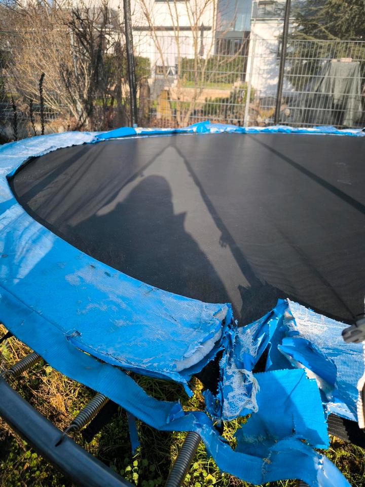 Wir verschenken unser Trampolin.Es ist in einem guten Gebrauchten Zustand und Funktionsfähig, lediglich die Randabdeckung/Sicherheitsumrandung ist Porös. Man kann diese Nachkaufen (30-40€ online). Zum Schutz sollte sie unbedingt erneuert werden.Das Sicherheitsnetz ist nicht porös oder beschädigt.Das Trampolin muss selbst abgeholt/abgebaut werden.Standort Viernheim.