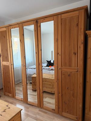 MaßeGroßer Kleiderschrank ca. 241 X 217 cm (Breite x Höhe)Kleiner Kleiderschrank (2x vorhanden) ca. 205 X 220 cmVitrine ca. 78 X 217 cmSelbstabbau und Abholung in Merkstein