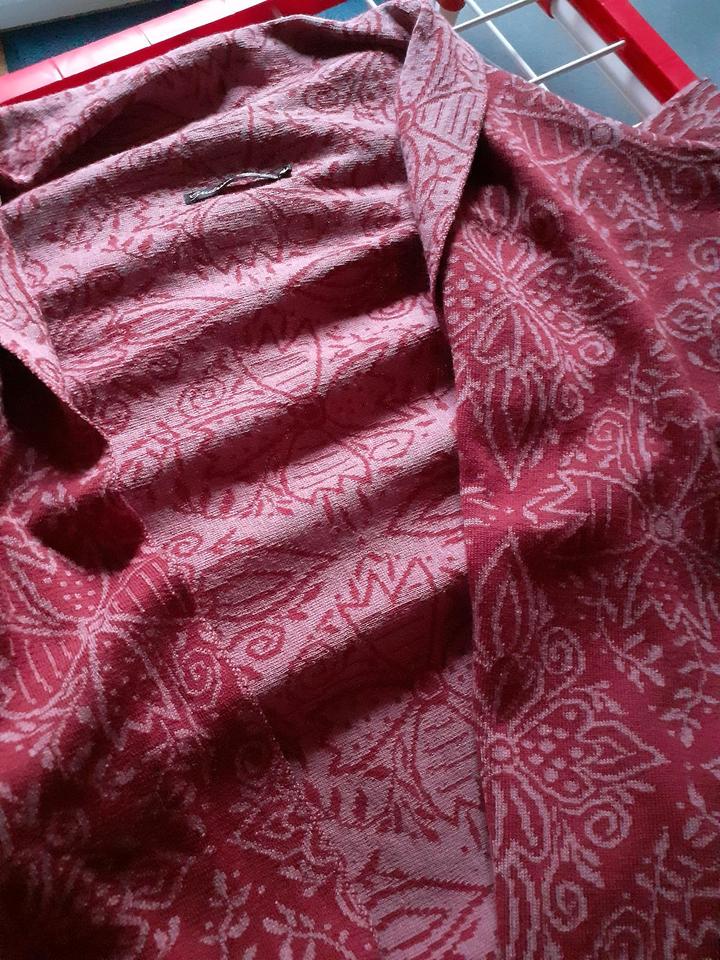 Verschenke eine Strickjacke/Cape von Gudrun Sjörden, Größe S/M, rot-rose, Seide/Wolle, frisch gewaschen. Die Jacke hat leider ein paar kleine Löcher - wer Lust hat, die zu stopfen... Nur Abholung!