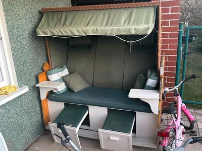 Verschenken unseren Strand Korb. Mit bisschen Liebe sieht er wieder gut aus. Maße breit 1,50 höhe 1,70 und tief 90 am besten mit Anhänger !! Vorfahren einladen entspannen ! ist auf Rollen Einfahrt runter rollen ganz easy