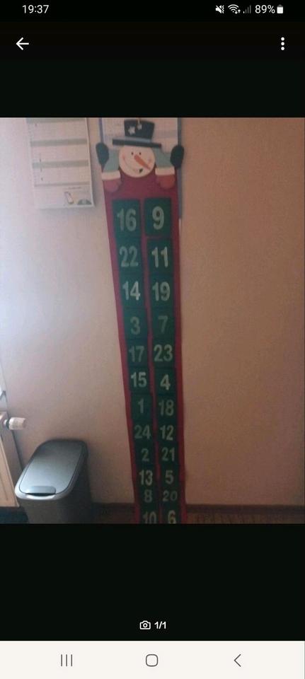 Zu verschenken ein Adventskalender zum selbst befüllenWurde nie benutzt lag nur in der WeihnachtskisteUnd jetzt ist meine Tochter zu alt dafürAber für den Müll zu schadeNur an Selbstabholer