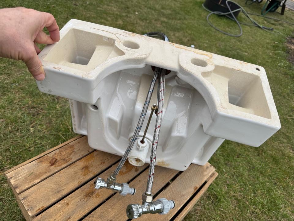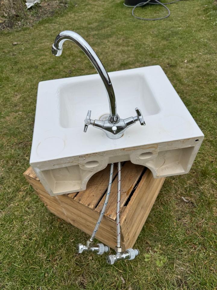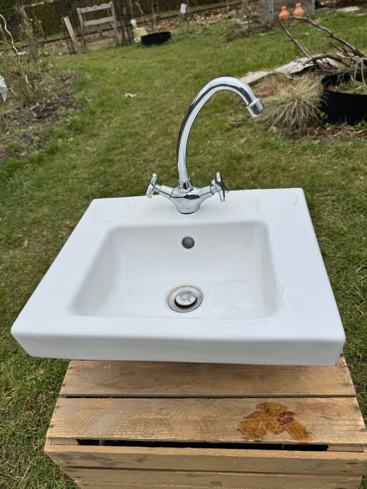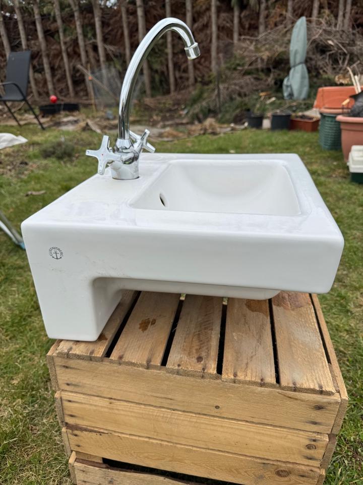 Spülbecken mit Armatur und AnschlüssenDas Spülbecken ist in gutem Zustand und sofort einbaufertig. Ich möchte es spenden. Der Interessent muss das Spülbecken in einem Schrebergarten in der Nähe des Beetzsee Centers abholen.English:Sink with faucet and connectionsSink in apparently good condition and ready for installation and use. I would like to donate it. The interested party should pick up the sink at a community garden (Schrebergarten) located near the Beetzsee Center.