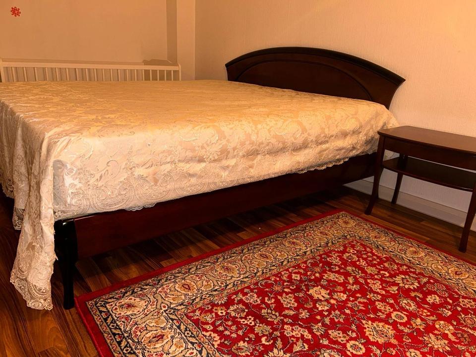 Ich biete mein Schlafzimmer aus stabilem Holz zum Verkauf an.Bestehend aus: • Kleiderschrank • Länge: 4,15 Meter • Tiefe: 70 cm • Höhe: 2,20 Meter • Bett (180 x 200 cm) ohne Lattenrost und Matratze • Zwei NachttischeDer Schrank und das Bett sind sehr stabil und gut erhalten. Normale Gebrauchsspuren sind vorhanden.Die obere Leiste im Schrank ist links oben etwas locker.Die linke Schiebetür wurde repariert.199€ - FestpreisEs handelt sich um einen Privatverkauf – keine Rücknahme und keine Garantie