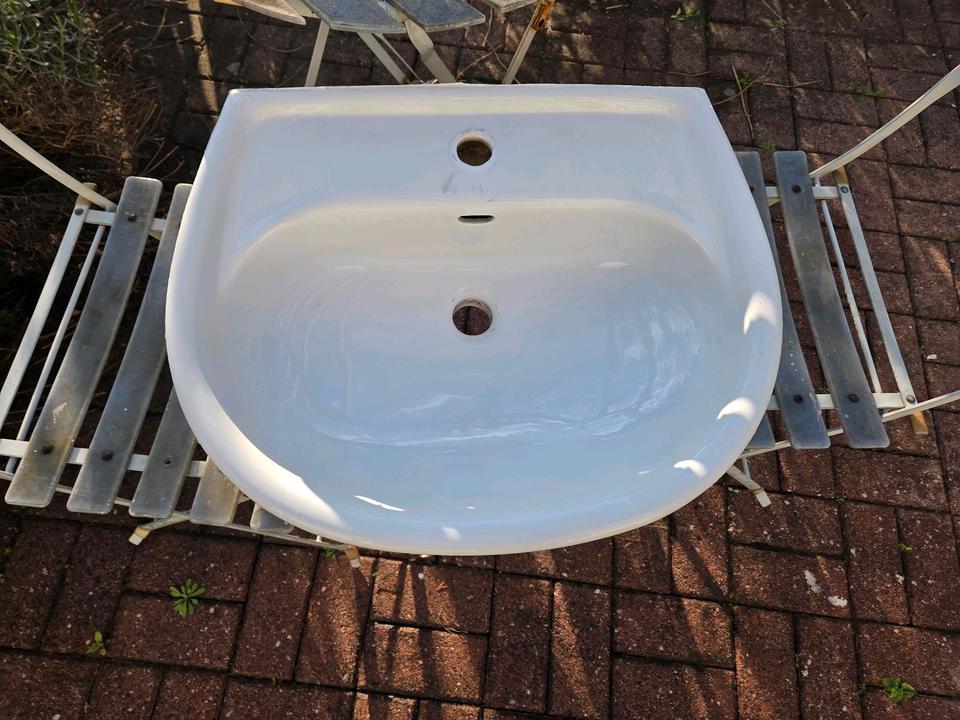 Ich verschenke dieses gebrauchte Waschbecken. Incl. diesem Unterkeil. Nur Anholung.