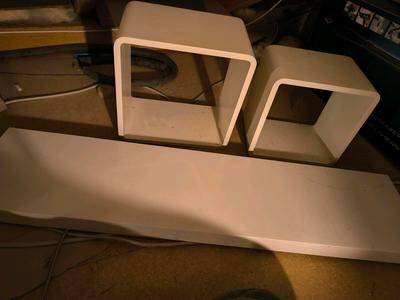 3 Würfel in drei GrößenUnd Regale in verschiedenen Größen