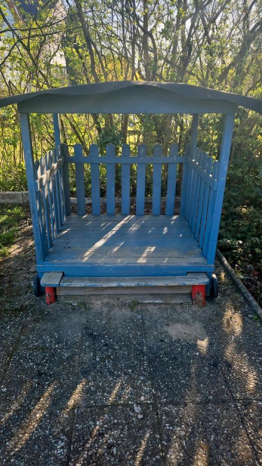 Verschenke unseren geliebten Sandkasten. Er braucht mal nen neuen Anstrich und das Rad muss richtig drauf wenn er leer ist. Sonst top in Schuss. Praktisch weil der Sand geschützt ist und das Häuschen bietet Platz für Spielzeug oder Fahrzeuge. Wird einfach nach hinten geschoben. Nur selbstabholung.